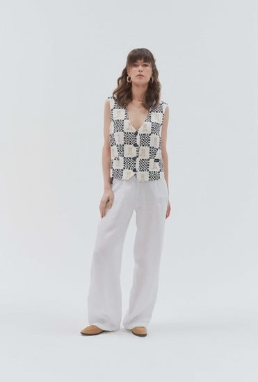 STYLE TIP: For a coordinated statement look, pair the linen waistcoat Vesta in Iconic pattern with matching linen pants Impresionante, the linen shirt Brillante or wide-leg linen shorts Bonita. For a bolder style, mix with contrasting linen separates to highlight the waistcoat’s distinctive pattern.